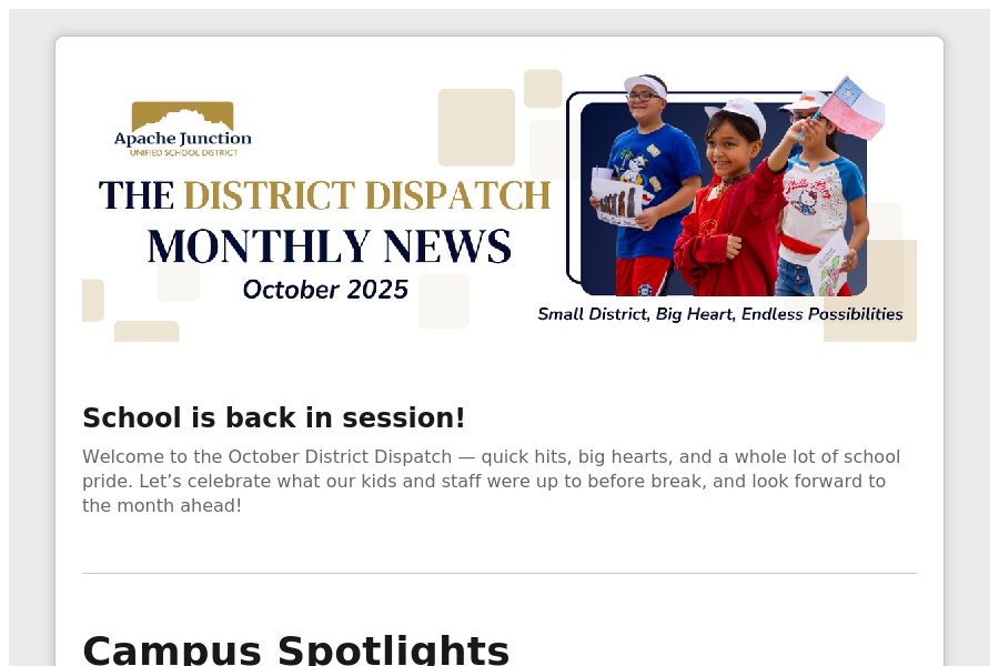 School is back in session! Welcome to the October District Dispatch quick hits, big hearts, and a whole lot of school pride. Lets celebrate what our kids and staff were up to before break, and . . .